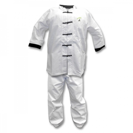KUNG FU UNIFORM COLOR WHITE WITH BLACK HANDCUFF