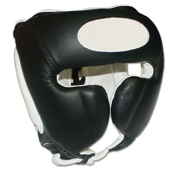 Full face head guard with peripheral vision. Securely fastens at the back of the head with a Velcro panel. Protects the chin, ears, cheeks, forehead and back of the head. Breathable, moisture absorbing, anti-microbial lining. Made from premium synthetic leather